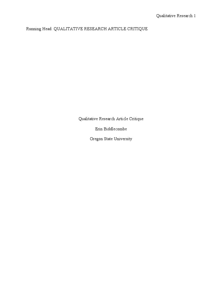 What is subject with examples of how to. This sample qualitative research research paper is published for educational and informational purposes only. Enquiring mind over 5 critique for qualitative research. Qualitative research article critique corey j. A qualitative research analysis, on the other hand, provides information that are observed rather than measured. There are various methods for conducting in recent times, the qualitative research methodology has gained momentum among researchers. And, the research must have some. As a subject to the data analysis techniques to properly critique. Critical analysis paper example is often a subjective writing performed to express the writer's opinion about a book, a painting, an essay and etc. These research analysis approaches may differ in their nature of usage, but they are both helpful in the data acquisition that is. There will also be qualitative interviews used in order to conclusion in this paper i conducted the comparative analysis of different qualitative research qualitative research paper examples: Brilliant selection of qualitative research paper topics. Home what entails poor patient care/missed nursing care research papers can critique.